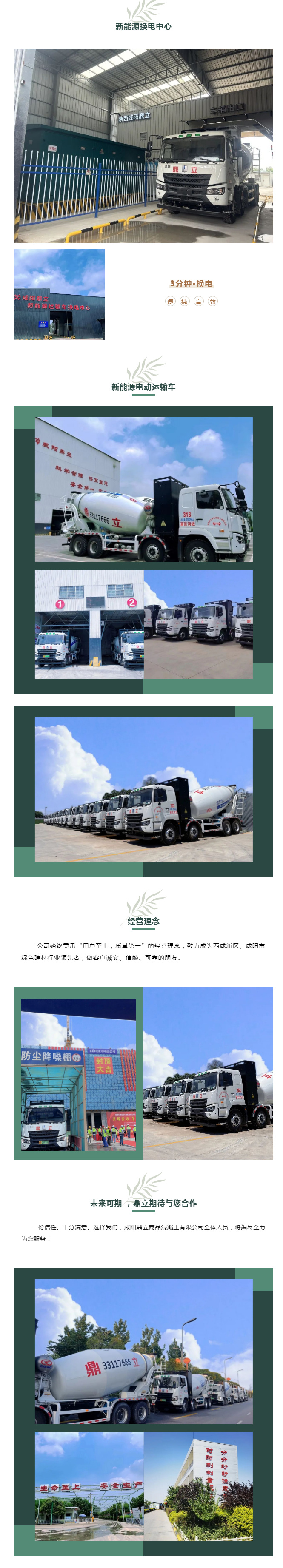 為響應(yīng)國(guó)家“十四五”發(fā)展規(guī)劃,順應(yīng)“能源革命”潮流,圍繞“碳達(dá)峰、碳中和”目標(biāo)和“建立健全綠色低碳循環(huán)發(fā)展經(jīng)濟(jì)體系”國(guó)家戰(zhàn)略,建設(shè)綠色環(huán)保型企業(yè),我公司于2023年3月開(kāi)始,建設(shè)了新能源運(yùn)輸車換電中心,啟用了新能源電動(dòng)攪拌運(yùn)輸車40余輛,加上之前使用的2臺(tái)電動(dòng)裝載機(jī),使整個(gè)生產(chǎn)區(qū)域達(dá)到綠色、環(huán)保、低碳、零排放標(biāo)準(zhǔn)。